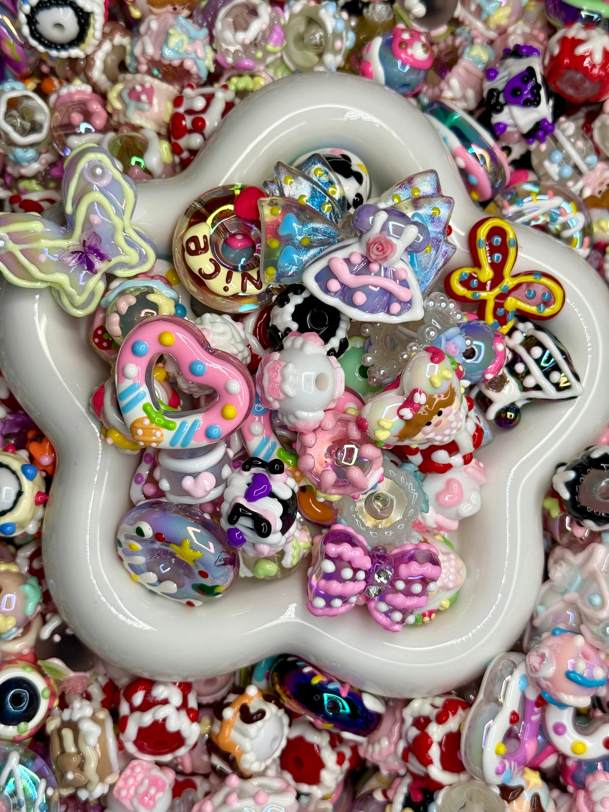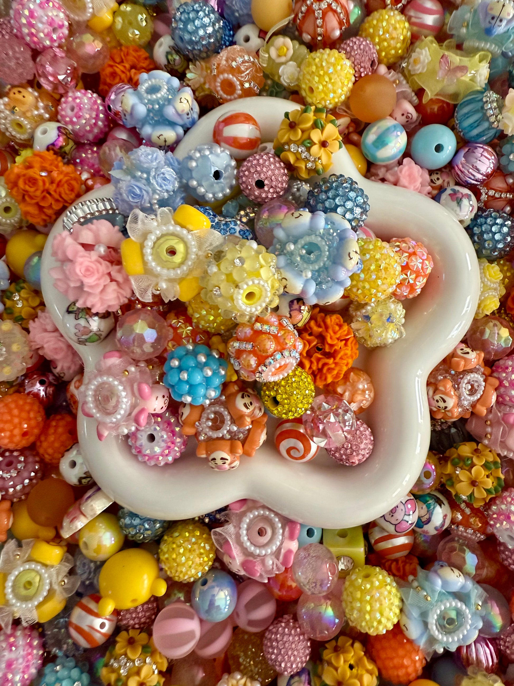 Custom mix beads. Get a bag full of beautiful beads. From rhinestone, jelly, acrylic beads. Flowers, figures and just all kinds of wonderful beads. They are mix in a way that they will help you create amazing stuff.